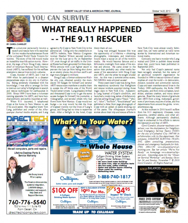 Read the article (part of a series of 9 articles supporting Doug Copp) as published by the Desert Valley Star , a California newspaper, exposing the malicious lies and attacks against Doug Copp