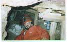Doug Copp seen crawling under a subterranean beam, at the World Trade Center. He took off his jumpsuit because the fire made the area temperature soar well over 100 F.